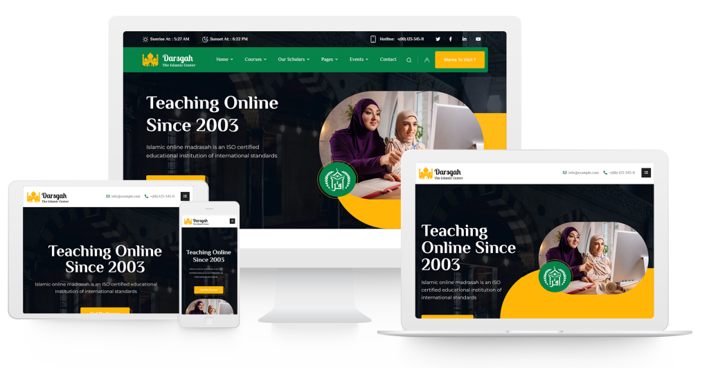 Darsgah is a powerful and specialized WordPress theme built for Islamic education platforms, madrasahs, and online learning systems. It is designed to provide a complete academic environment where institutions can deliver structured courses, manage students, and publish educational content with ease.