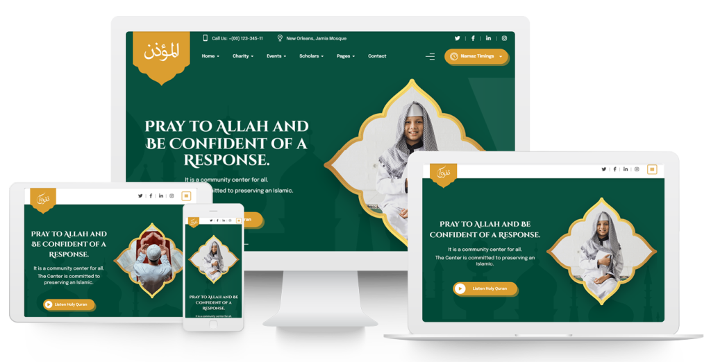 Muezzin is a thoughtfully designed Islamic WordPress theme that focuses on spiritual connection, prayer management, and community engagement. Built specifically for mosques and Islamic centers, it reflects the essence of unity and discipline inspired by the call to prayer.