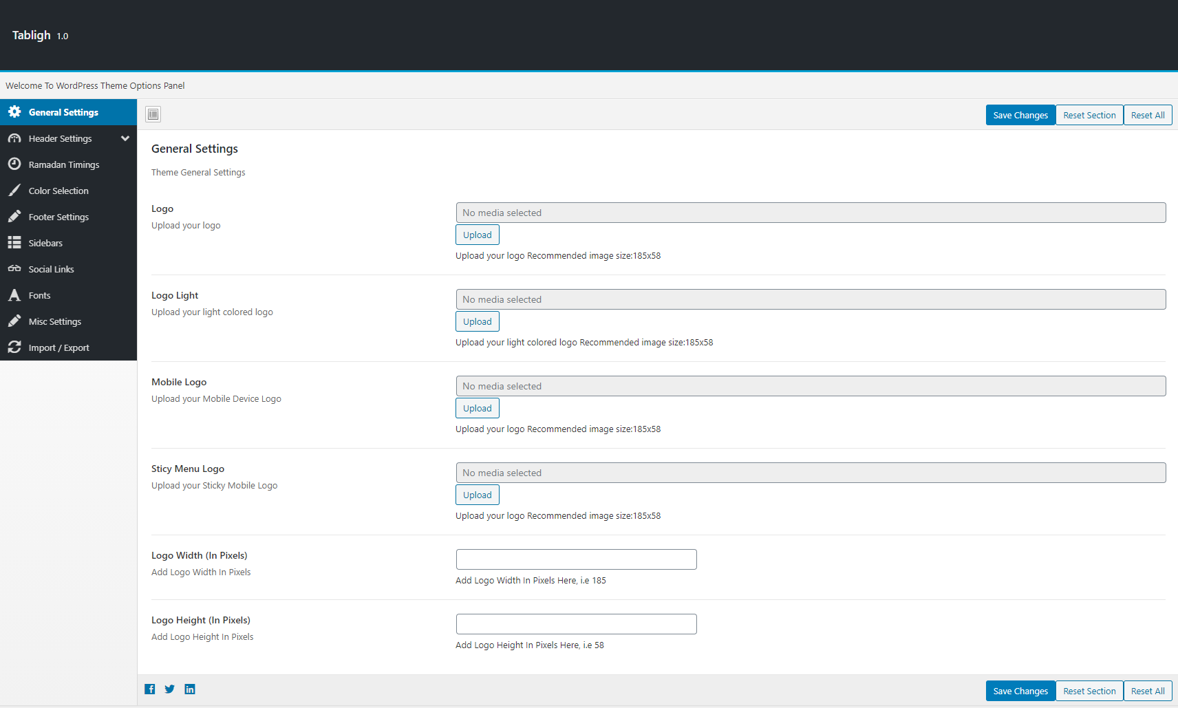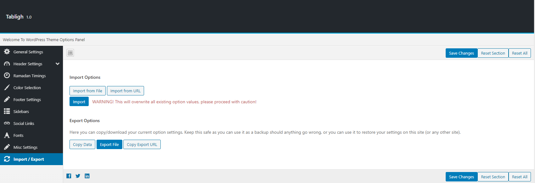You can import your default settings and export them as well from this section. Import default settings from import settings file given in the sample content directory of the full package you downloaded from themeforest for quick start.